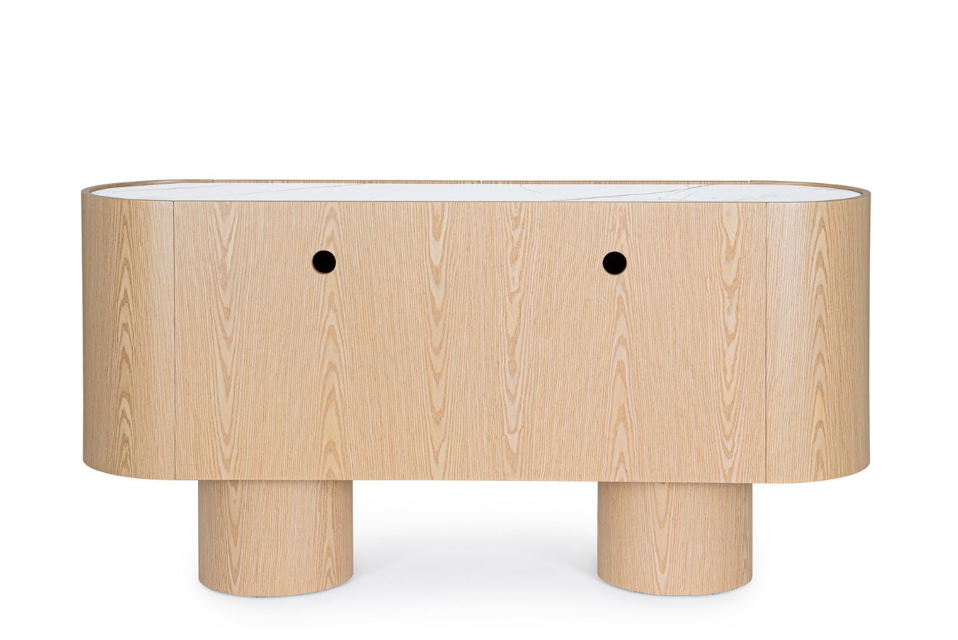 Dwudrzwiowa komoda Otilia to funkcjonalny mebel, który doskonale spełni swoją funkcję w wielu pomieszczeniach. Jego jasna kolorystyka ładnie połączy się z wieloma kolorami wykończeń. Jej konstrukcja została wykonana z fornirowanej płyty mdf, blat jest z spieku kamiennego. Produkt posiada poliuretanowe wykończenie. Komoda posiada otwierane drzwi z cichym domykiem, za którymi umieszczone są półki. Obecność komody będzie cieszyła oko właścicieli gdyż jest to niezwykle dekoracyjny mebel.