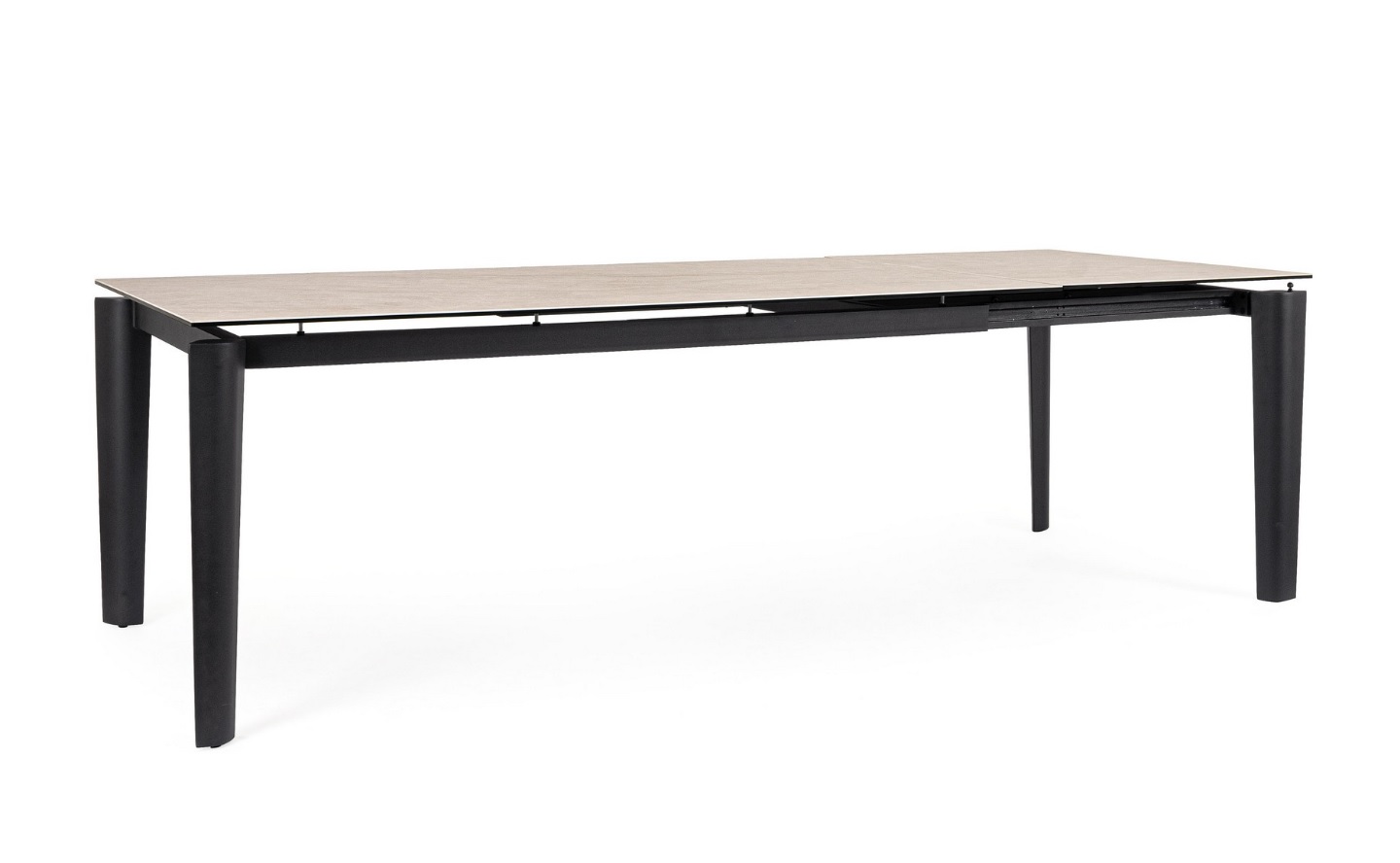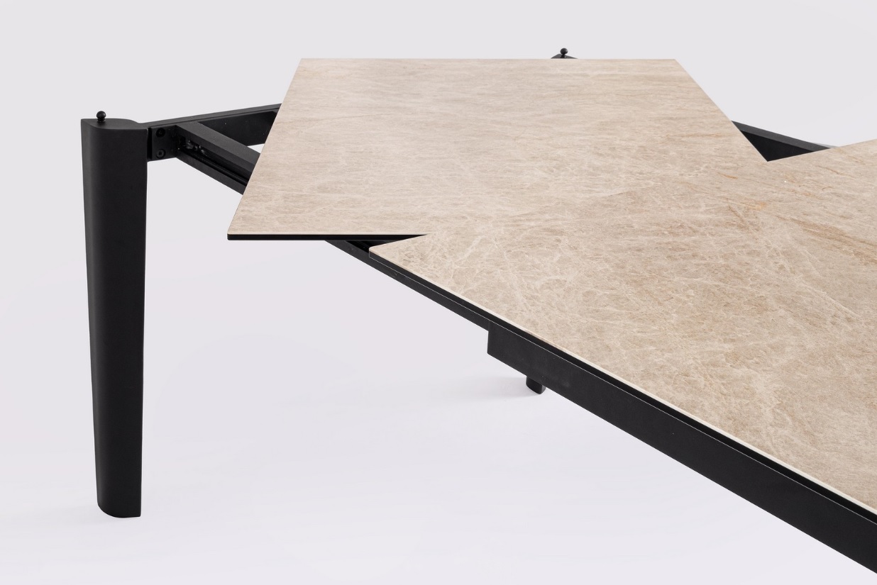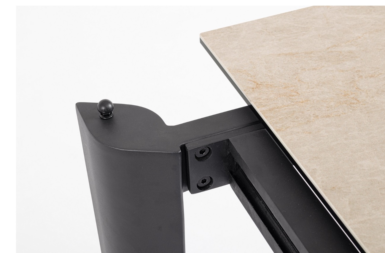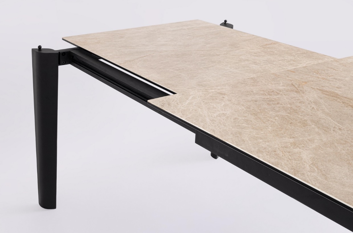 Prezentowany stół Asari to minimalistyczny produkt, który świetnie sprawdzi się w wielu pomieszczeniach począwszy od minimalistycznego po nowoczesny. W obecności krzeseł stworzy idealne miejsce do rodzinnych spotkań. Stół posiada stalową ramę i nogi, które zostały pokryte proszkiem epoksydowym. Blat jest ceramiczny z efektem trawertynu, jego dolna warstwa jest ze szkła hartowanego.