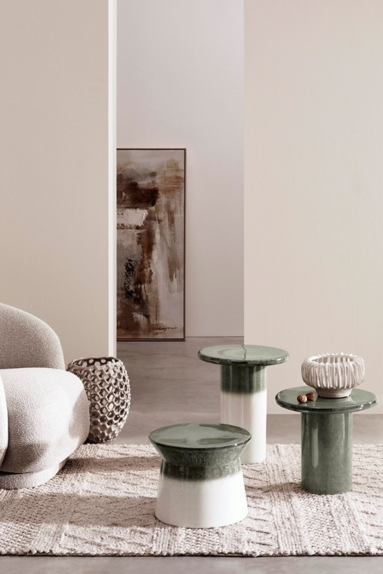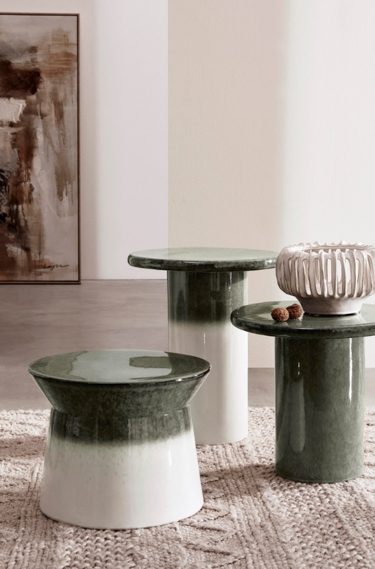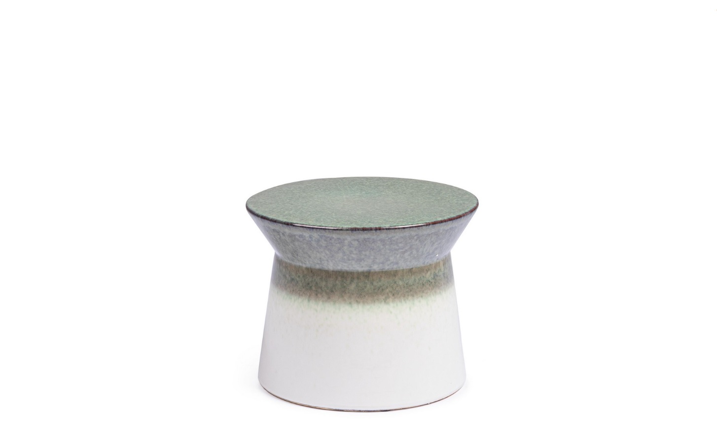 Zielono-biały stolik Baraki to idealna propozycja do dekoracji wielu pomieszczeń. Dzięki niewielkim rozmiarom świetnie sprawdzi się w małych wnętrzach a w połączeniu ze stolikami z tej samej kolekcji również w większych. Jest to idealny produkt dla tych, którzy szukają prostych i oryginalnych dodatków. Stolik wykonany jest ręcznie z ceramiki szkliwionej. Blat połączony jest z podstawą w harmonijną całość. Wszelkie różnice w kolorze, tonach lub drobne niedoskonałości należy traktować jako cechę wyjątkowości produktu a nie jego wadę.